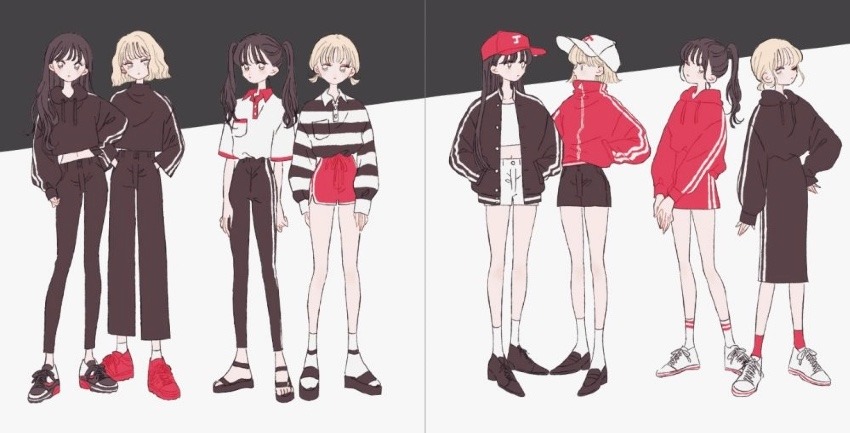 スタイル: 韓国風(淡色カラーやシャツのタックイン)、カジュアルなセットアップ