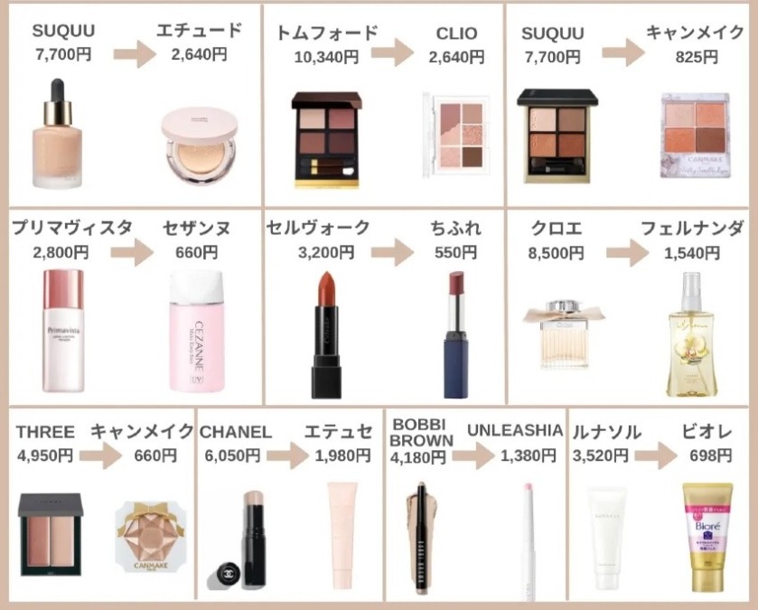 プチプラコスメとデパコスについて調べる。